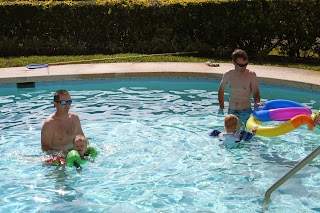 The past couple of weekends we have been fortunate to hang out with family. Last week, Matt and Grey came to visit while Carly and Cam went to California. My parents also came to town to help out (because after planning the trip, Matt remembered he had to be in DC for a couple hours one day....which took the whole day to fly up and back). So we moved into the beach house and had tons of fun.....beach, pool, aquarium, visiting the farm, painting pumpkins, watching tv while it was raining outside, visiting Murrells Inlet to see all the boats, shopping for "horsey" shirts and more! Grey is such a sweet kid and it was fun to watch Drew's interaction with him. We also snuck in one Aspen Grill dinner while Sassy and Papa stayed home with the boys.